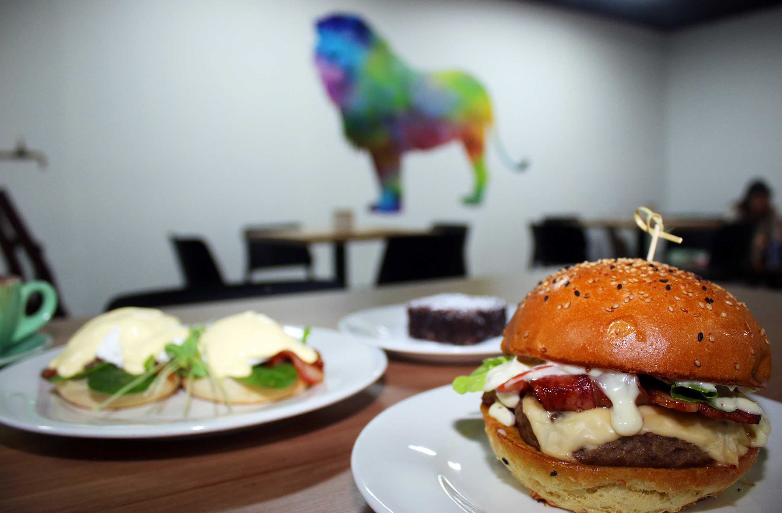 BUrger eggs and lion